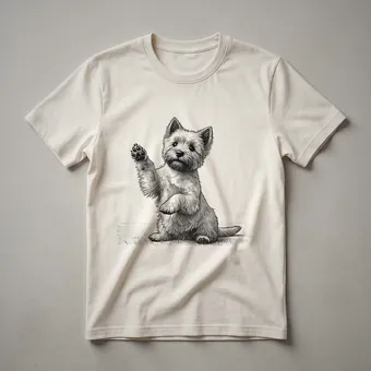 Show off your adoration for the spirited Cairn Terrier with this adorable graphic t-shirt featuring a dog raising its paw in a charming pose.This eye-catching graphic tee features a charming illustration of a Cairn Terrier with its front paw raised, as if offering a friendly greeting or a playful request. The design captures the breed's alert and inquisitive nature, making it a standout piece for any dog enthusiast. Cairn Terriers, originating from the Scottish Highlands, are known for their hardiness and affectionate companionship. This shirt is a wonderful way for owners to express their bond with their canine companions. It makes a thoughtful gift for the Cairn Terrier mom or dad in your life, or for anyone who appreciates unique dog-themed apparel. Wear this t-shirt to your next dog park visit, a casual outing with friends, or simply while relaxing at home with your beloved pet. It's a versatile addition to any dog lover's wardrobe, celebrating the joy that Cairn Terriers bring into our lives.