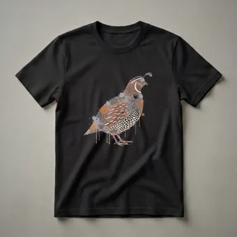 - A striking artistic splatter art tee for California Quail admirers and birding enthusiasts.