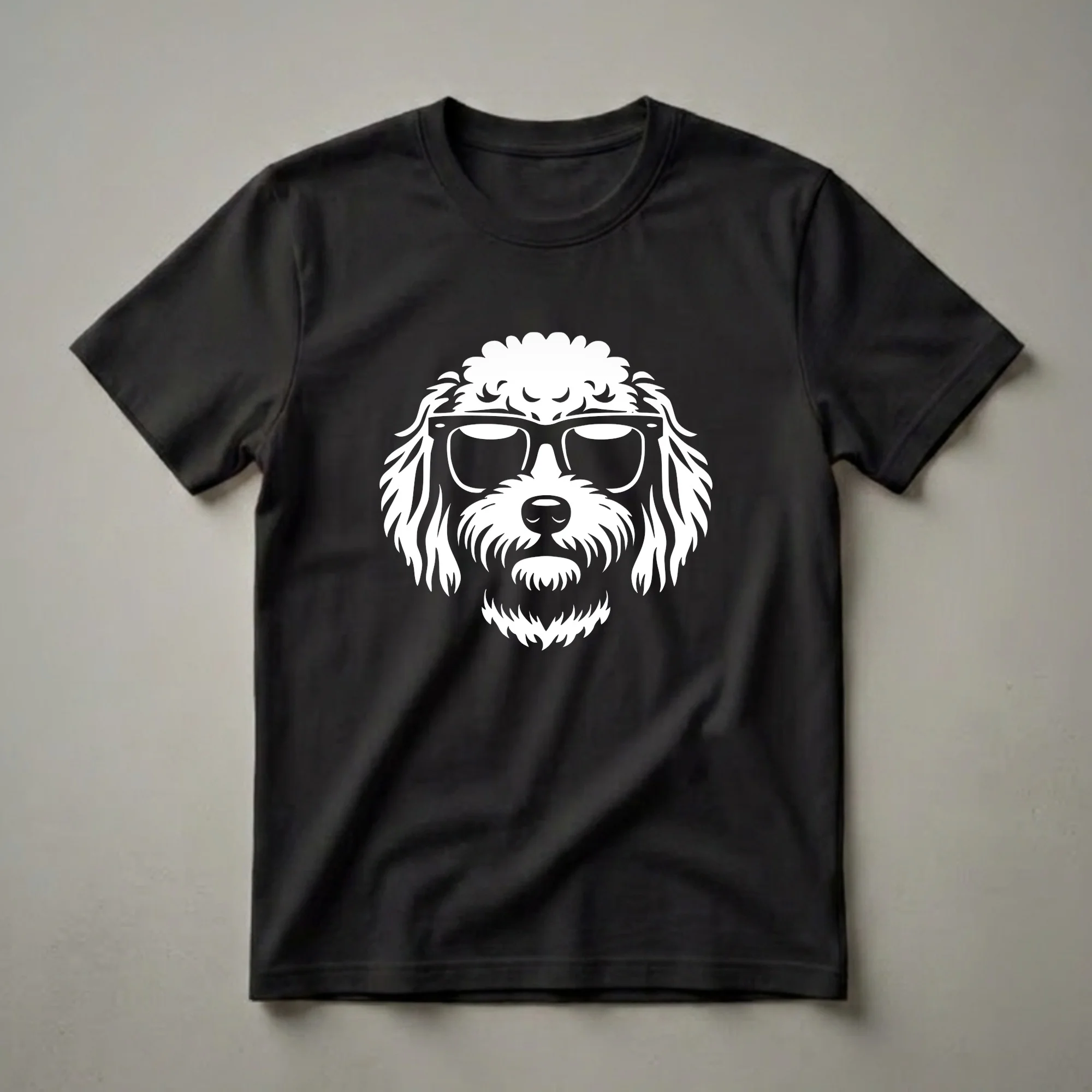 Dog lovers will adore this graphic tee featuring a cool Cavapoo sporting stylish sunglasses, capturing their breed's playful and confident personality.This graphic tee captures that playful spirit with a striking white design of a Cavapoo's face sporting a pair of cool sunglasses. The stylized fur and closed eyes give the dog a relaxed, confident look, making this shirt a unique statement piece. Cavapoos, a crossbreed between a Cavalier King Charles Spaniel and a Poodle, are known for their friendly demeanor and hypoallergenic coats, making them popular companions. This t-shirt is a fantastic way for any proud Cavapoo mom or dad to express their affection for their furry friend. It's a go-to tee for casual outings, dog park visits, or just lounging at home. Looking for a gift for the Cavapoo enthusiast in your life? This eye-catching shirt makes a thoughtful gift for birthdays, holidays, or any occasion. Celebrate the bond you share with your canine companion by wearing this distinctive dog graphic tee. It's more than just apparel; it's a declaration of your love for your four-legged family member.