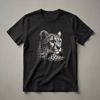 Wildlife enthusiasts and admirers of the savanna's fastest predator will appreciate this detailed cheetah graphic tee. The artwork features a striking, monochromatic depiction of a cheetah's face, rendered in a scratchboard style that emphasizes the animal's keen gaze and textured fur. Cheetahs, known for their incredible speed and slender build, are native to Africa and parts of Iran, inhabiting grasslands, savannas, and open plains. This shirt captures the essence of this magnificent feline, making it a standout piece for anyone who cherishes the natural world. It's a thoughtful gift for the hiker, nature photographer, or zoology student in your life. Wear this unique t-shirt to your next nature documentary screening or while exploring your favorite hiking trails. The intricate linework and dramatic contrast make this cheetah shirt a conversation starter, celebrating the beauty and power of these iconic animals. This apparel is a staple for those who connect with the spirit of the wild.