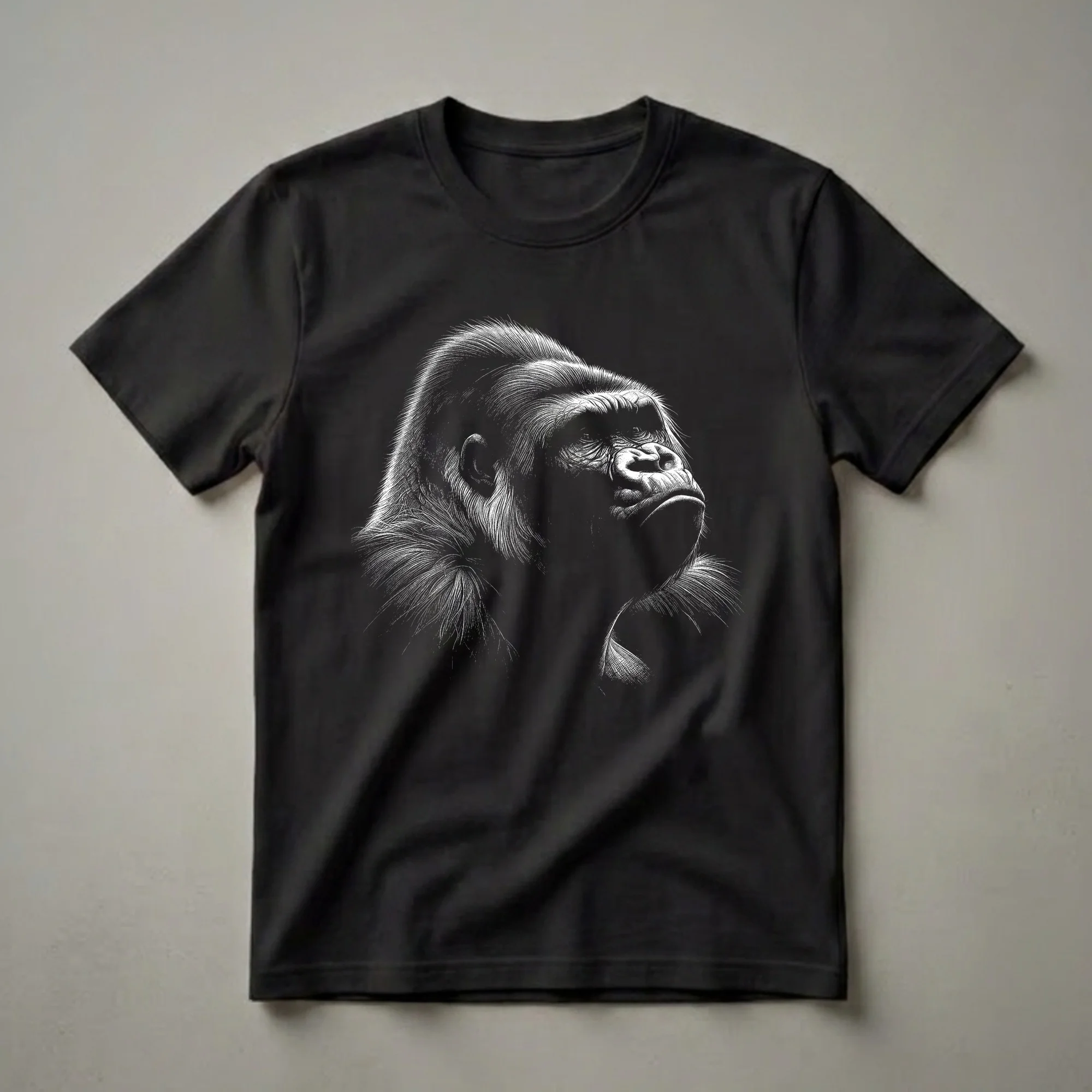 Chimpanzee enthusiasts will reach for this unique graphic tee, featuring a detailed scratchboard-style illustration of a chimpanzee's head and shoulders. The intricate linework captures the thoughtful expression and textured fur of these intelligent primates. Chimpanzees, known for their complex social structures and tool use, are fascinating creatures native to the forests of equatorial Africa. This t-shirt serves as a wearable tribute to these remarkable animals, making it a standout piece for any wildlife lover. It’s a thoughtful gift for men and women who admire primates and appreciate detailed wildlife art. Wear this shirt to your next nature walk or casual outing to spark conversations about conservation and the wonders of the animal kingdom. This eye-catching shirt is a staple for anyone passionate about primates.