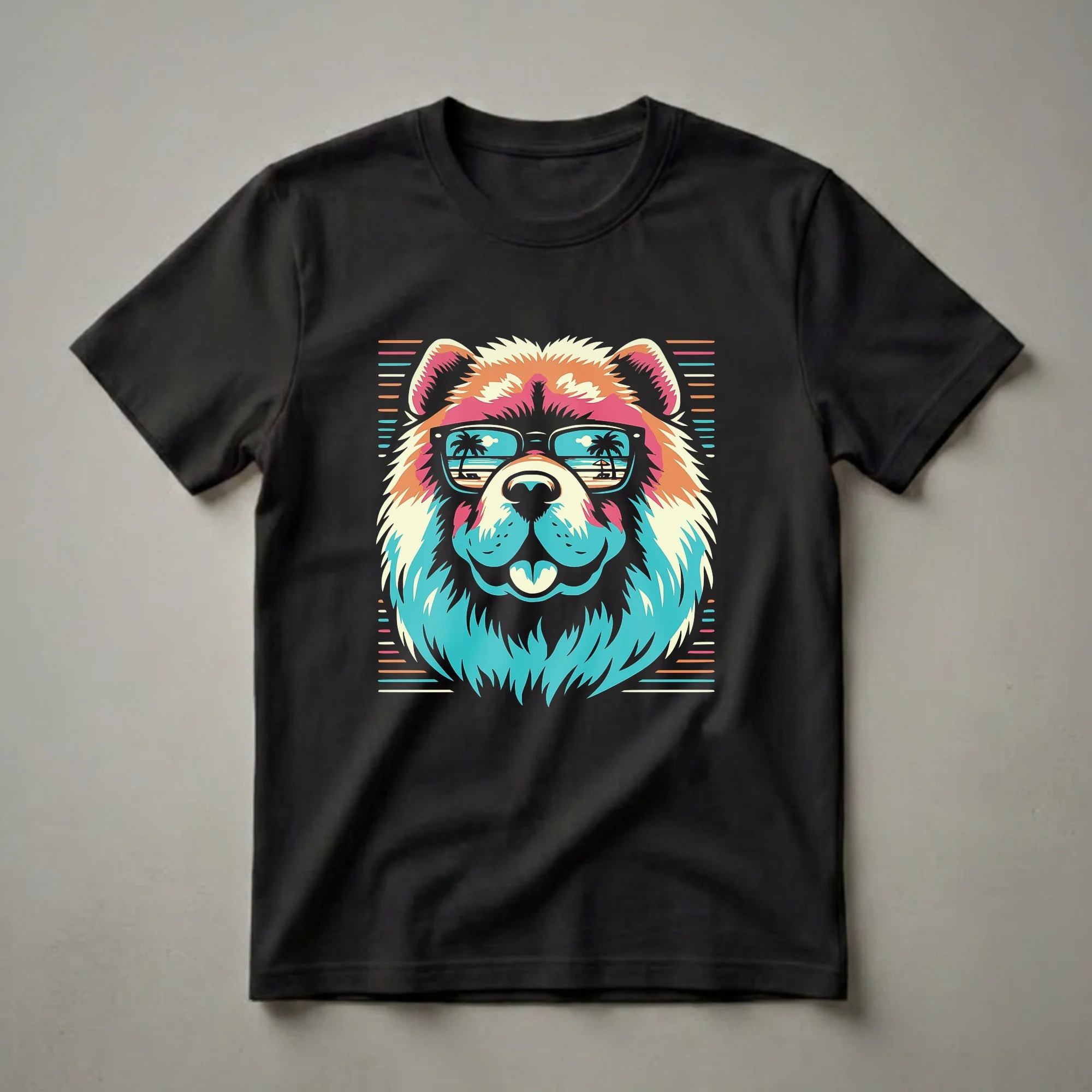 - A colorful graphic t-shirt for Chow Chow owners featuring sunglasses and a beach reflection.