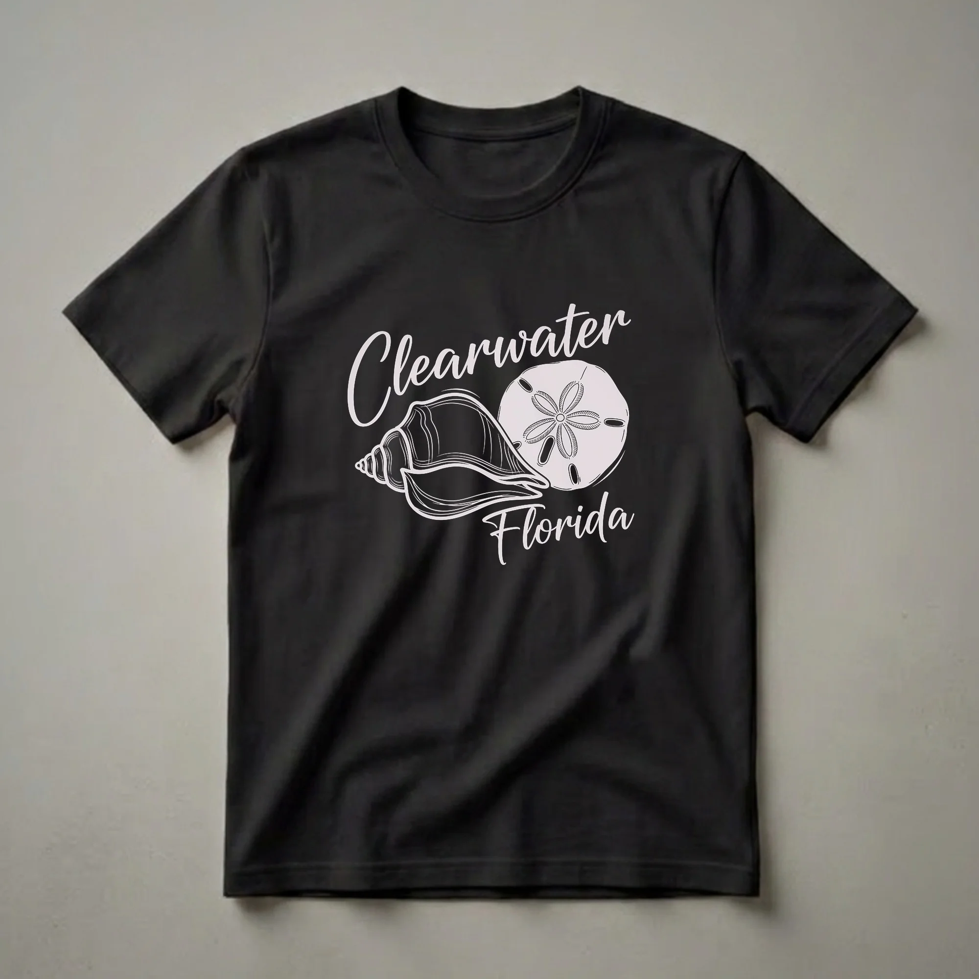 Clearwater, Florida, beckons with its pristine beaches and vibrant coastal charm. This graphic tee captures that essence with a classic drawing of a conch shell and a sand dollar, iconic symbols of the Gulf Coast. The script lettering proudly displays 'Clearwater Florida,' making it a clear statement of appreciation for this beloved destination. Clearwater Beach, consistently ranked among the top beaches in the United States, offers miles of soft white sand and calm, clear waters well suited for swimming and sunbathing. This shirt is a thoughtful gift for anyone who has fond memories of visiting or living in this sunny locale, or for those planning their next Florida getaway. It's a staple in the collection for beachcombers and sun-seekers alike. Wear this tee to remember your vacation or to bring a piece of the Florida coast with you wherever you go. It's a great way to express your connection to this beautiful part of the Sunshine State.