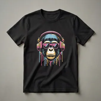 - Graphic t-shirt featuring a cool chimpanzee with sunglasses and headphones.