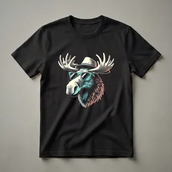 - Graphic t-shirt for men and boys featuring a cool moose with sunglasses.