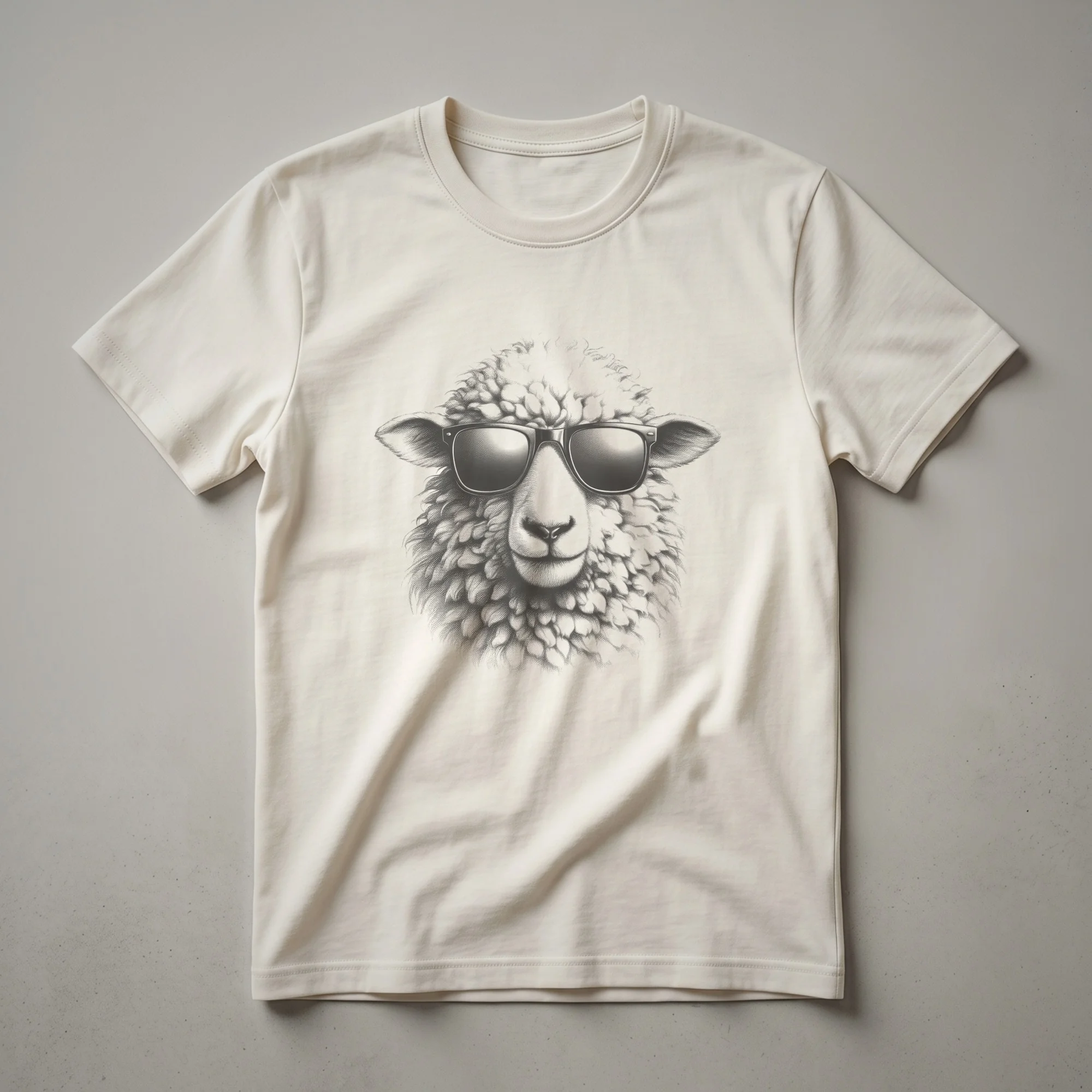 Sheep are fascinating mammals known for their wool and gentle nature, often found grazing in pastures across the globe. This striking graphic tee features a stylized drawing of a sheep's head, complete with a textured wool pattern and cool, dark sunglasses. The artistic rendering gives the sheep a laid-back, confident vibe, making this t-shirt a standout piece for anyone who appreciates unique animal art. This shirt works well for farmers, shepherds, or anyone who enjoys a touch of whimsy in their wardrobe. It makes a thoughtful gift for the sheep farmer in your life or for a friend who loves quirky animal designs. Wear this tee to casual outings, farm visits, or just lounging around the house. It’s a conversation starter that celebrates the charm of these farm animals with a modern, artistic twist. This graphic shirt is a staple for those who want to express their appreciation for wildlife with a sense of humor and style. The detailed drawing captures the essence of the sheep while the sunglasses add a playful, contemporary edge, creating an eye-catching design that stands out.