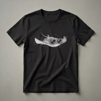 Marine life enthusiasts and ocean lovers will appreciate this unique graphic tee featuring a stingray sporting a pair of cool sunglasses. The artwork is rendered in a distinct vintage drawing style, giving it a timeless appeal. Stingrays, known for their graceful movements through shallow coastal waters and sandy seabeds, are fascinating creatures of the ocean. This shirt captures a playful, laid-back vibe, making it a go-to tee for anyone who enjoys the sea. It's a thoughtful gift for divers, snorkelers, or anyone who dreams of the ocean. Wear this shirt to the beach, on a boat trip, or simply when you want to bring a touch of the sea with you. This t-shirt is a conversation starter, a thoughtful choice for casual outings and expressing your connection to the underwater world. The detailed drawing style highlights the unique features of the stingray, from its broad pectoral fins to its distinctive shape, all while maintaining a cool, relaxed persona.