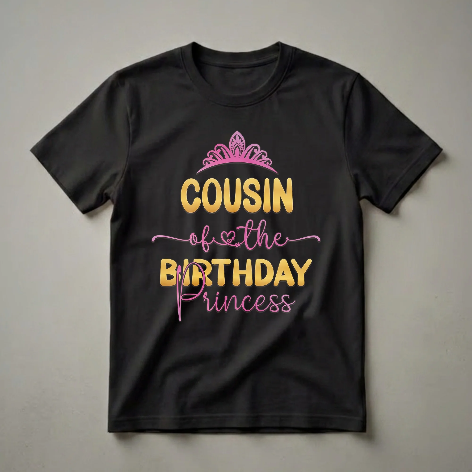 - Proudly display your 'Cousin of the Birthday Princess' title with this fun, royal-themed graphic t-shirt.