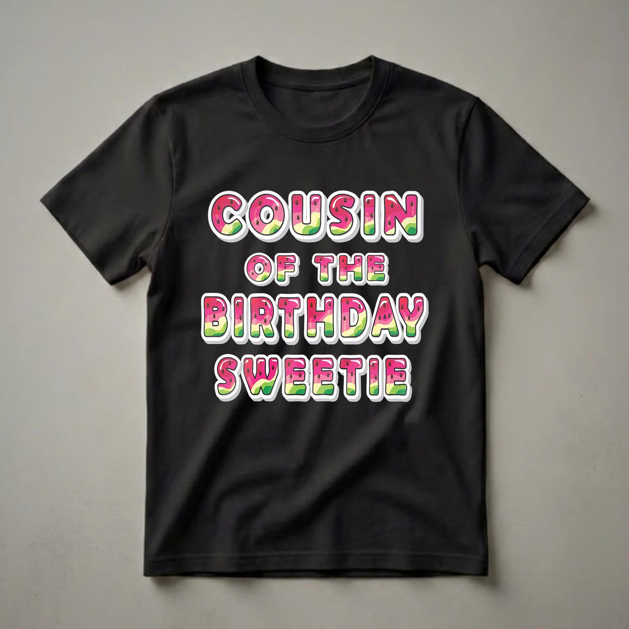 - Celebrate your role as the 'Cousin of the Birthday Sweetie' with this juicy watermelon graphic tee.