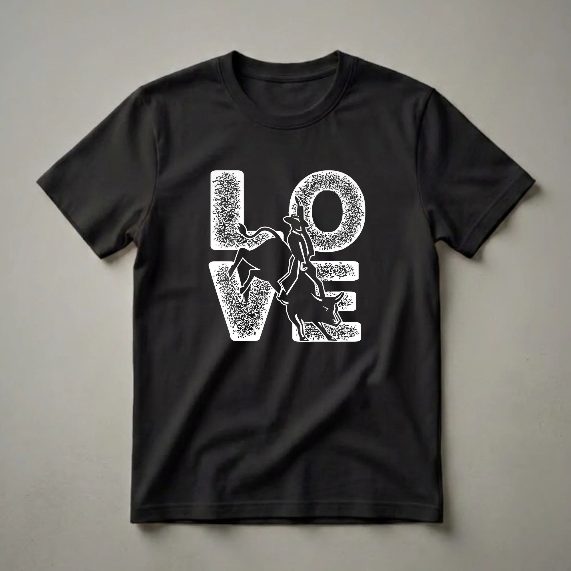 Hover to zoom · tap to expand Cowboy Bull Riding LOVE Graphic T-Shirt for Rodeo Fans