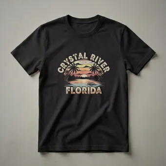 Crystal River, Florida, is a place where the natural beauty of the Sunshine State truly shines, and this graphic tee captures that essence. The design showcases a vibrant retro sunset over the tranquil waters, framed by silhouetted palm trees. In the foreground, a gentle manatee surfaces, a beloved inhabitant of these Florida waters. Crystal River is renowned as one of the best places in the United States to swim with manatees, often referred to as 'sea cows,' due to the warm springs that attract them year-round. This shirt is a wonderful way for anyone who has visited or dreams of visiting this unique Florida destination to express their love for its wildlife and scenic beauty. It makes a thoughtful gift for Florida residents, snowbirds, or travelers seeking a memento of their coastal adventures. Wear this t-shirt to remember your vacation or to bring a piece of Florida's coastal charm into your everyday wardrobe. It's a staple for anyone who appreciates marine life and the laid-back Florida lifestyle.