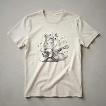 Musicians who appreciate whimsical art will reach for this unique graphic tee. The design features a charming illustration of a fox, depicted in a playful drawing style, strumming a guitar. Surrounding the musical fox are delicate butterflies, adding a touch of natural beauty and whimsy to the artwork. This t-shirt is a fantastic way for guitarists, bassists, or any music enthusiast to express their passion. The fox, known for its intelligence and adaptability, is often seen as a symbol of cleverness and resourcefulness, traits that resonate with dedicated musicians. This shirt works well for casual outings, jam sessions, or as a conversation starter among fellow music lovers. It makes a thoughtful gift for the guitarist in your life who enjoys unique and artistic apparel. Wear this tee to your next band practice or music festival to showcase your dual love for melodies and the wild. The intricate details of the drawing, from the fox's focused expression to the fluttering wings of the butterflies, make this shirt a wearable piece of art.