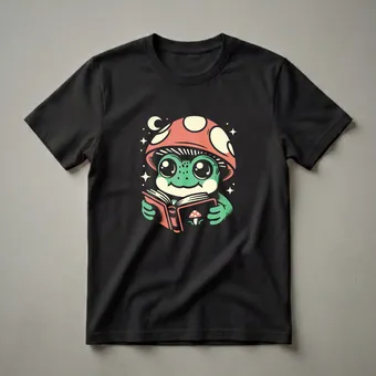 Hover to zoom · tap to expand Cute Frog Reading a Book Mushroom Cap Graphic T-Shirt