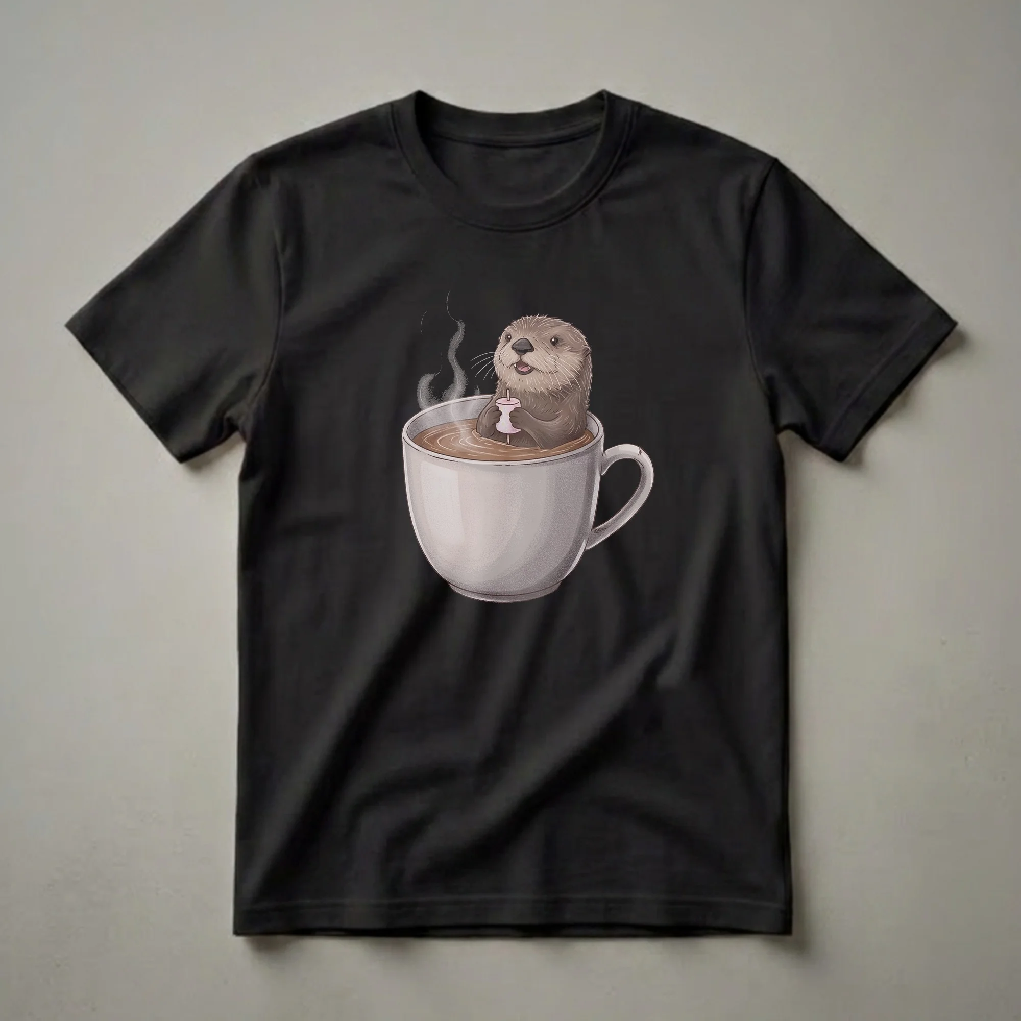 Hover to zoom · tap to expand Cute Otter Enjoying a Coffee Bath Graphic T-Shirt for Coffee Lovers