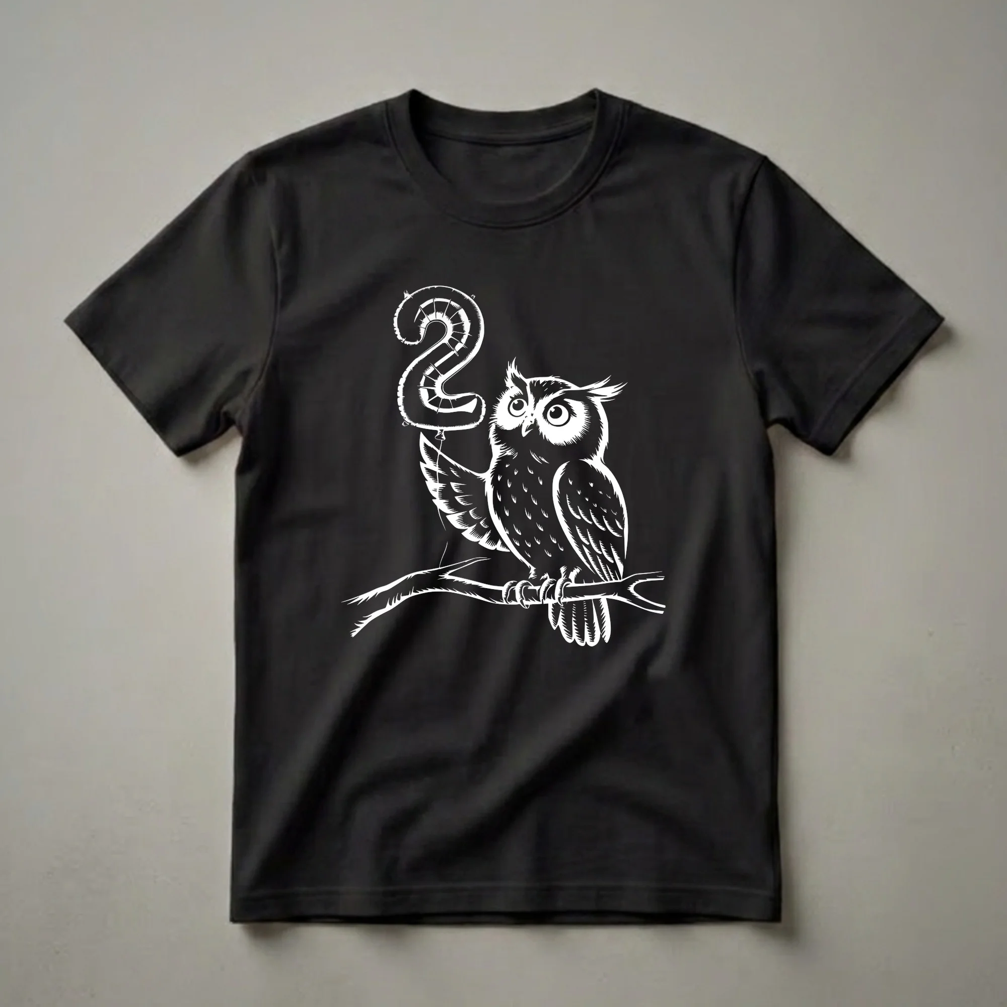 Two-year-olds are entering a new phase of exploration and discovery, and this charming graphic tee captures that spirit. The design showcases a stylized owl, rendered in a striking white outline against a dark background, perched confidently on a branch. This wise-looking bird clutches a large, inflated balloon shaped like the number '2', symbolizing the special milestone. Owls, known for their keen eyesight and nocturnal habits, are fascinating creatures that often capture the imagination of young children. This shirt is a thoughtful gift for any child celebrating their second birthday, whether it's for a birthday party, a family gathering, or just a fun everyday outfit. It's a delightful way for a two-year-old to express their personality and mark their special day. This t-shirt is a wonderful choice for parents looking for a unique and memorable birthday present for their little one. The playful imagery makes it a go-to tee for any occasion where a touch of whimsy is desired.