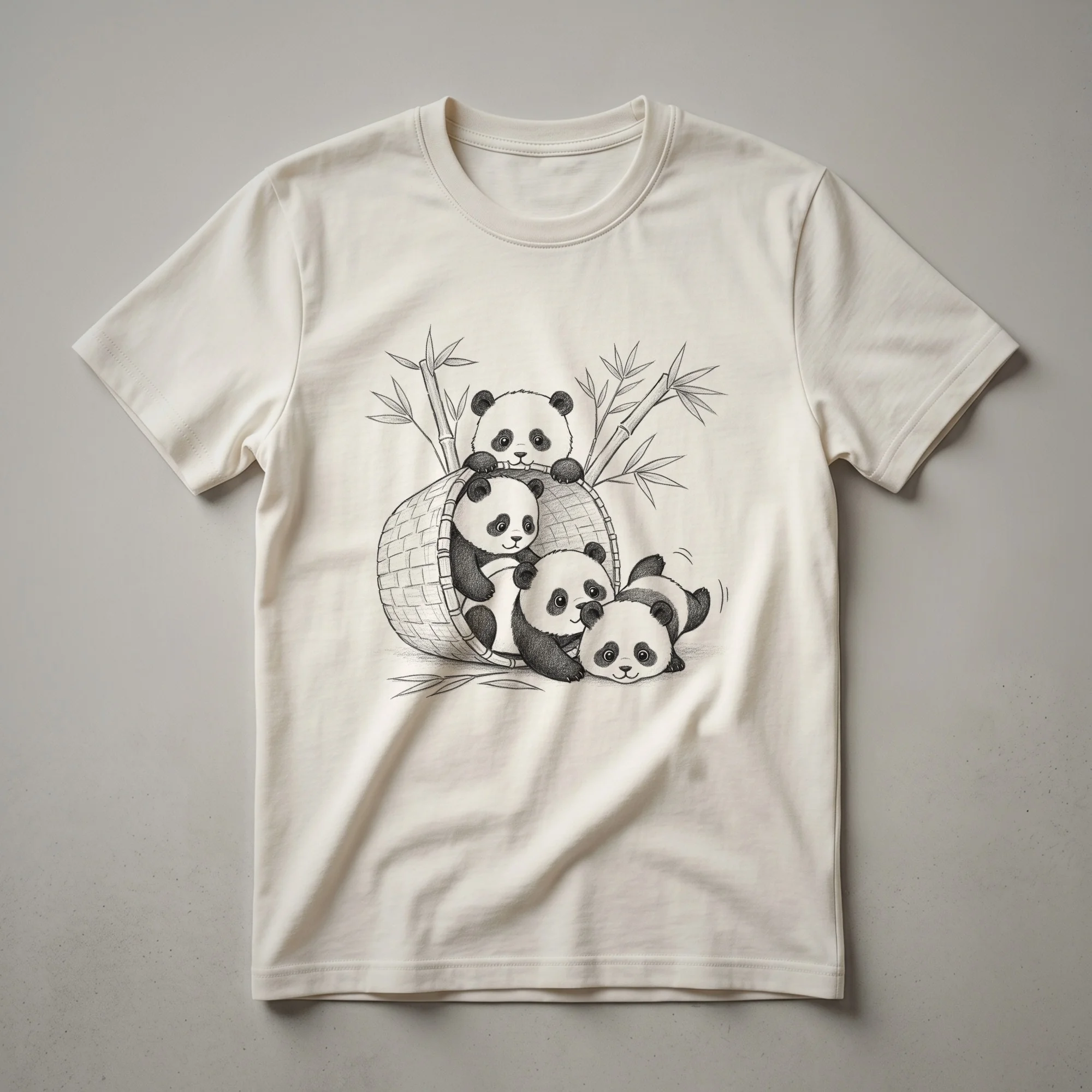 Children who adore the gentle nature and playful antics of pandas will reach for this charming graphic tee. The design showcases two endearing cartoon pandas engaged in playful activity, surrounded by bamboo stalks, rendered in a whimsical, illustrative style that appeals to young imaginations. Pandas, native to the bamboo forests of China, are known for their distinctive black and white markings and their peaceful demeanor, making them a beloved animal for children worldwide. This t-shirt is more than just apparel; it's a celebration of a child's fascination with these unique creatures. It makes a thoughtful gift for any child's birthday, especially for those turning ages 5 through 9 who are captivated by animals. Imagine their delight wearing this shirt to a birthday party or a casual day out, sparking conversations about their favorite animals. This comfortable tee is a staple for any young animal lover's wardrobe, offering a fun way to express their passion for pandas.
