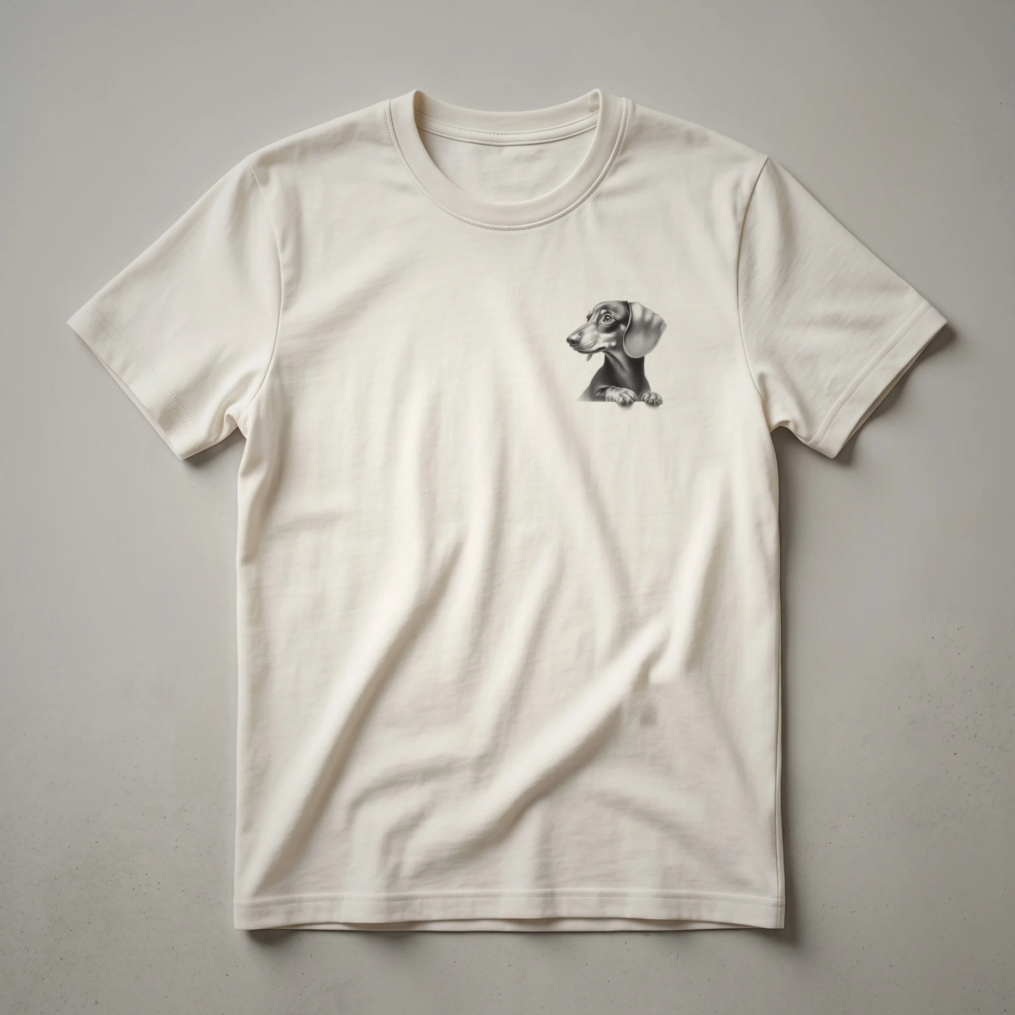Dachshund owners know the unique charm and personality of their beloved doxies. This graphic tee features a playful illustration of a Dachshund, often called a 'weiner dog' or 'doxie,' peeking over the bottom edge of the shirt. The design captures the breed's distinctive long body and short legs in a simple, endearing cartoon style. Dachshunds, originally bred in Germany to hunt badgers, are known for their bold spirit and curious nature, which this peeking design perfectly embodies. This shirt is a go-to tee for any Dachshund mom or dad who wants to showcase their affection for their four-legged friend. It makes a thoughtful gift for birthdays, holidays, or just because for the Dachshund lover in your life. Wear this comfortable t-shirt to casual outings, dog park visits, or while relaxing at home with your furry companion. It's a staple in the collection for anyone who adores these distinctive dogs. This apparel is a wonderful way to express your passion for this unique breed.