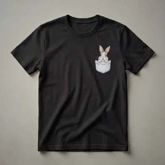 Wildlife enthusiasts and nature lovers will adore this unique t-shirt, showcasing a beautifully rendered pencil drawing of a young rabbit peeking out from a denim pocket. The artwork captures the curious and gentle nature of these small mammals, with intricate details in the fur, whiskers, and the texture of the pocket. Rabbits, known for their quick movements and soft fur, are often found in meadows, forests, and grasslands across the globe, where they play a vital role in their ecosystems. This graphic tee is a wonderful way for any admirer of the natural world to express their passion. It makes a thoughtful gift for friends or family members who appreciate detailed animal art and enjoy the outdoors. This comfortable shirt is a go-to tee for casual outings, hikes, or simply relaxing at home while surrounded by nature. Wear it to your next nature walk or to a casual gathering to spark conversations about your favorite woodland creatures. The detailed drawing style evokes a vintage wildlife illustration feel, making this shirt a standout piece for any collection.