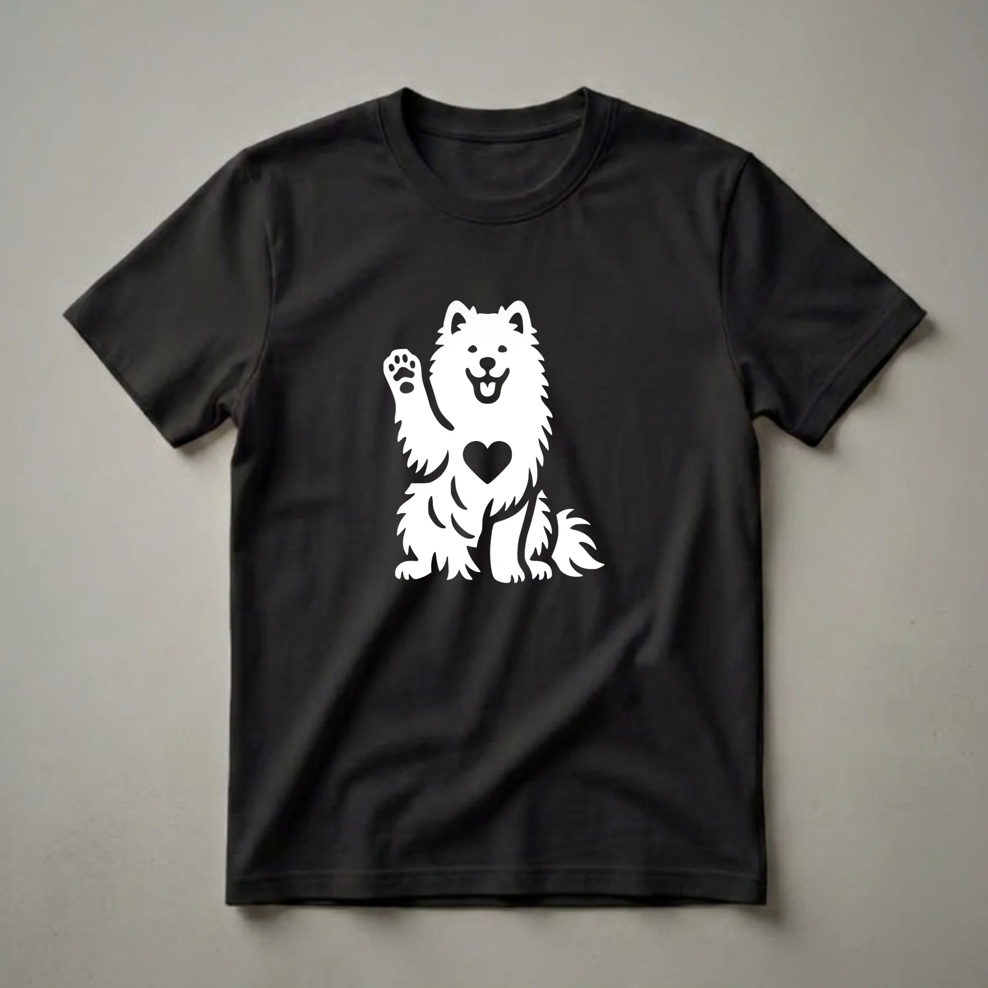Hover to zoom · tap to expand Cute Samoyed Dog Waving with Heart Graphic T-Shirt for Dog Lovers