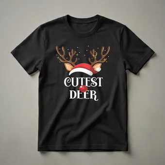 - Features a "Cutest Deer" graphic with reindeer antlers and a Santa hat, a fun choice for Christmas.