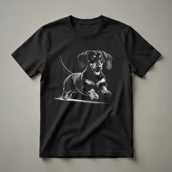 Dachshund owners who also embrace an active lifestyle will appreciate this striking graphic tee. The artwork features a detailed, scratchboard-style illustration of a Dachshund in full stride, its ears flapping and tongue out in joyful exertion. This artistic rendering captures the breed's surprising agility and energetic spirit, often underestimated due to their distinctive long bodies and short legs. Dachshunds, originally bred in Germany for hunting badgers, possess a tenacious and spirited nature that translates well to endurance activities. This shirt is a thoughtful gift for any Dachshund mom or dad who enjoys jogging, running, or simply celebrating their canine companion's zest for life. Imagine wearing this eye-catching t-shirt on your morning run, to a dog park meet-up, or while relaxing at home after a long walk. It’s a unique way to express your passion for both your furry friend and your commitment to fitness. This graphic shirt is a staple for any dog lover's wardrobe, offering a blend of artistic flair and athletic spirit.