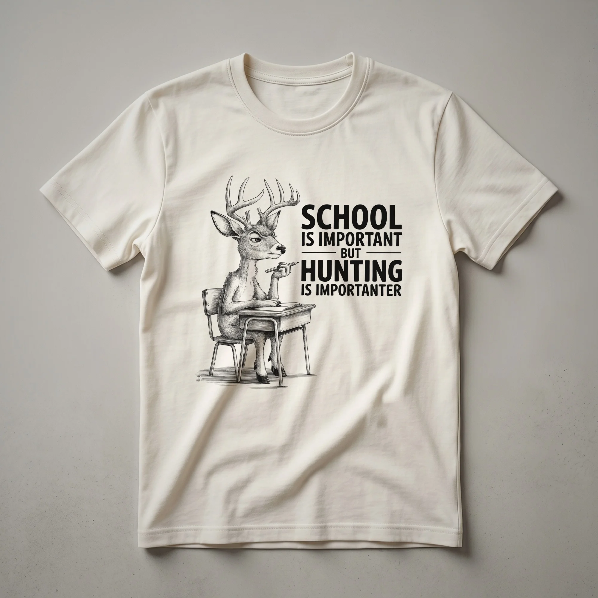 - This deer hunter t-shirt features a bold "Importanter" slogan for those who prioritize the hunt.