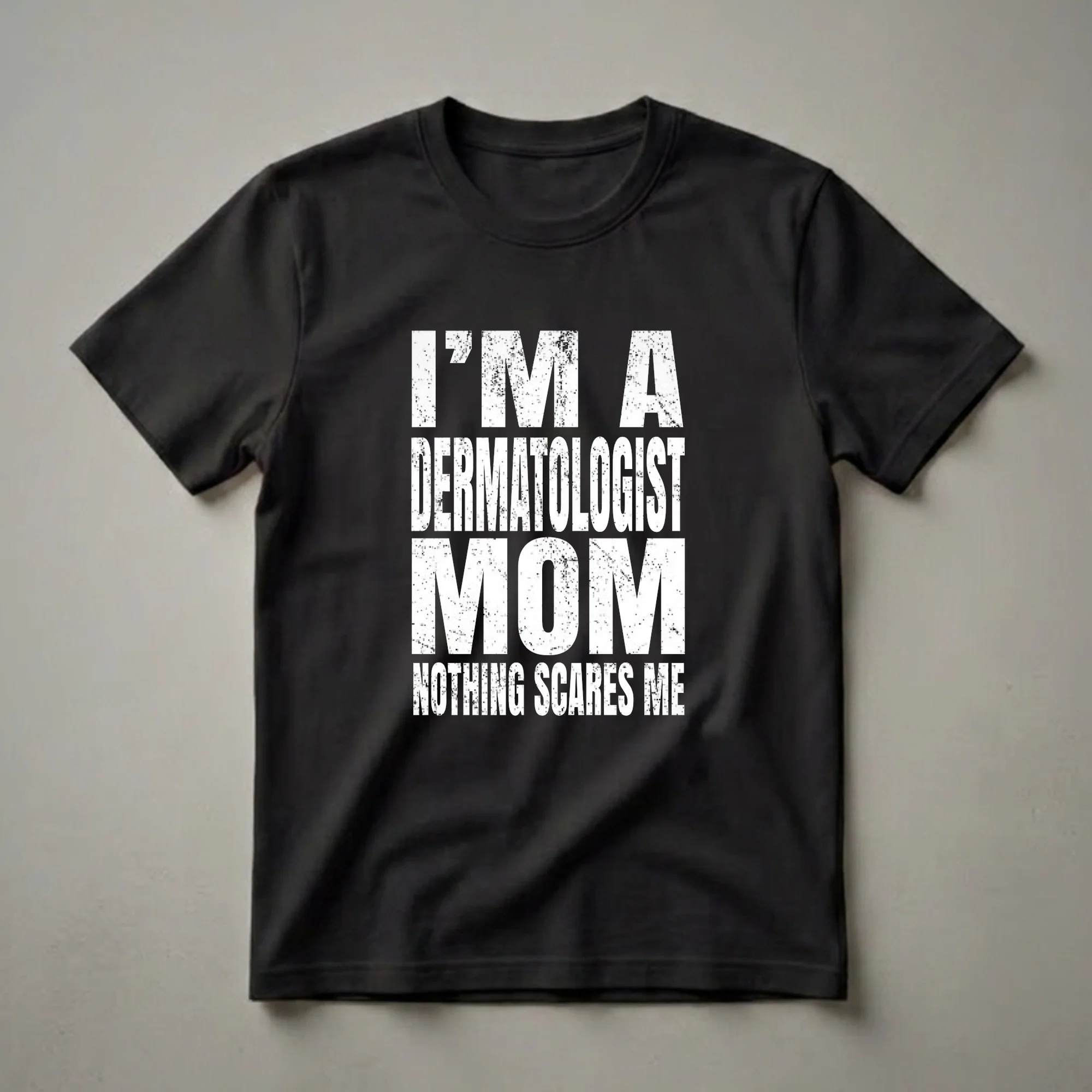 - "I'm A Dermatologist Mom Nothing Scares Me" graphic tee.