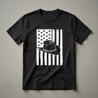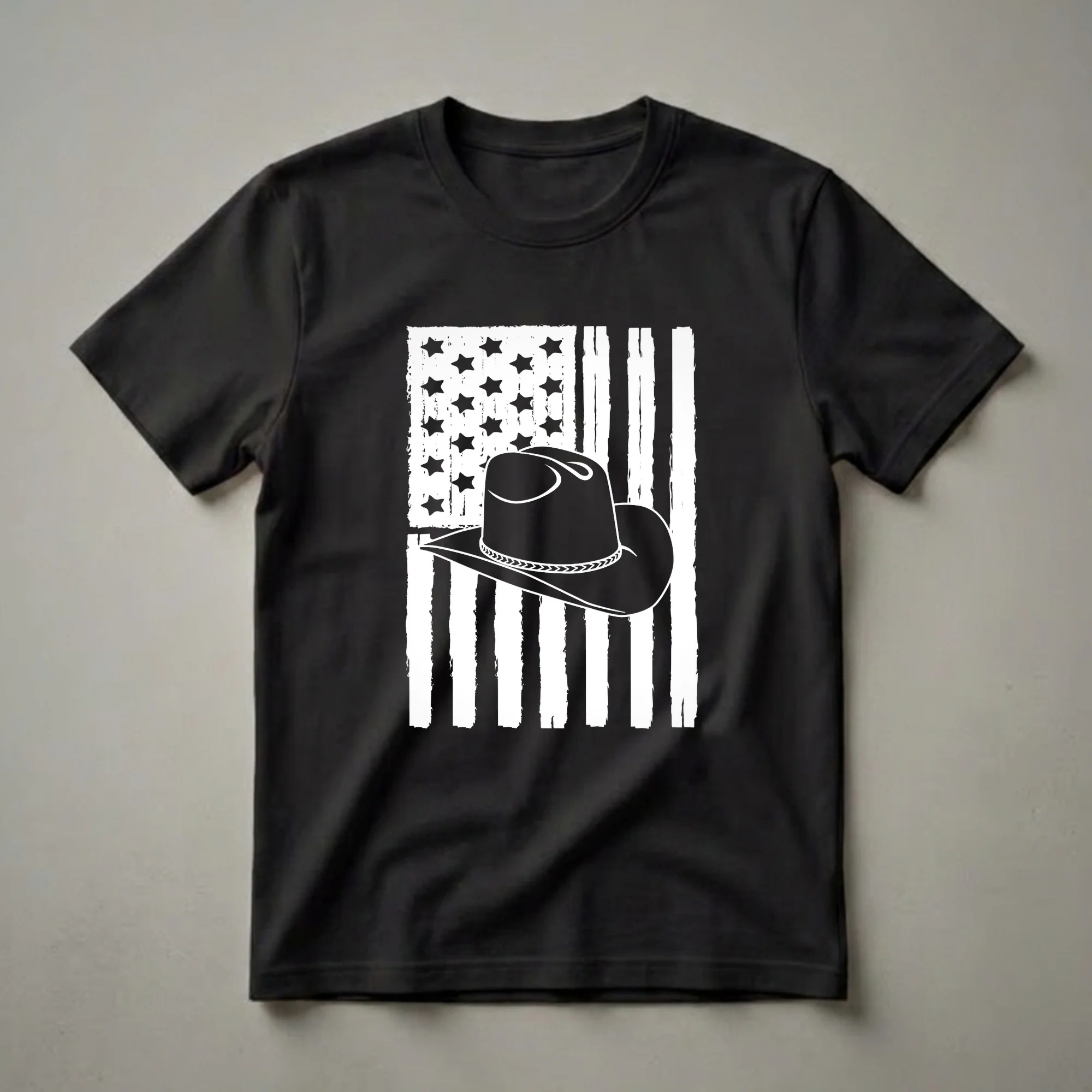 - Graphic tee for American flag and cowboy hat enthusiasts.