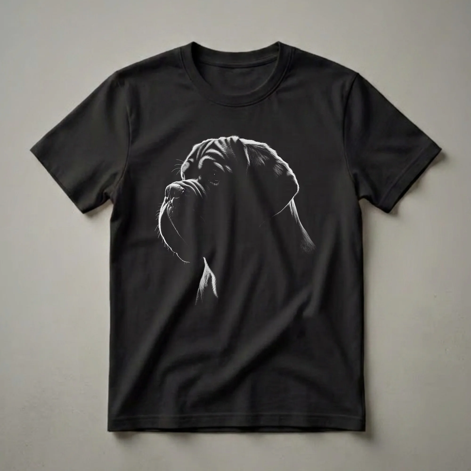 Showcase your appreciation for the Dogue de Bordeaux with this striking black and white artistic portrait of the breed's dignified head. This graphic tee features a dramatic, black and white artistic rendering of a Dogue de Bordeaux's head in profile. The striking contrast highlights the dog's powerful jawline, wrinkled brow, and soulful eye, creating an eye-catching piece of apparel. The Dogue de Bordeaux, also known as the French Mastiff, is a breed with a rich history, originating from France and historically used as guard dogs and for bull-baiting. This shirt is a staple for any dog mom or dad who appreciates the unique characteristics of this impressive canine. It makes a thoughtful gift for the Dogue de Bordeaux enthusiast in your life, a thoughtful choice for casual outings or relaxed days at home. Wear this unique t-shirt to express your admiration for this noble breed and spark conversations with fellow dog lovers. This apparel is a go-to for expressing your canine passion.