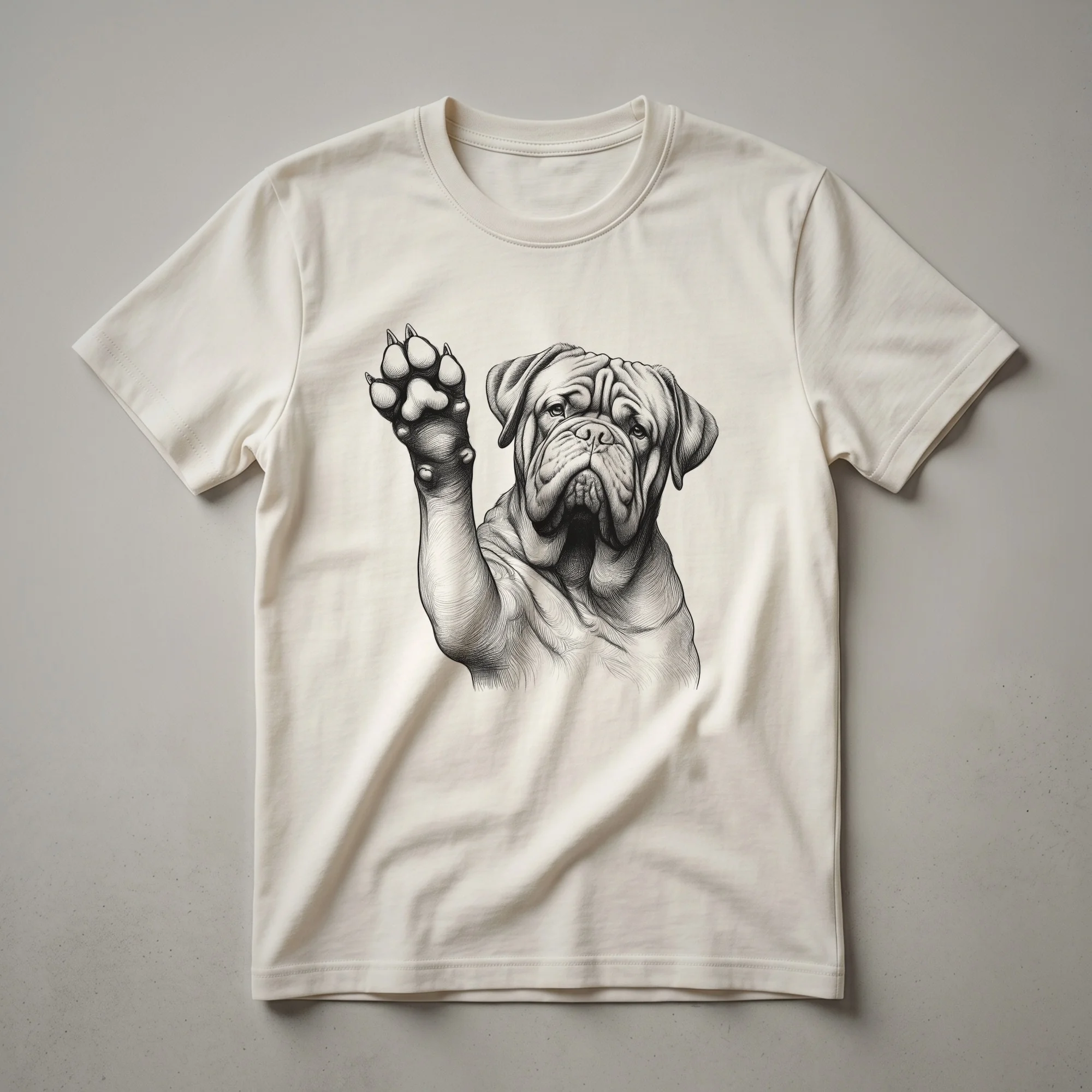 - Showcase Dogue de Bordeaux pride with this spirited dog raising its paw graphic tee.
