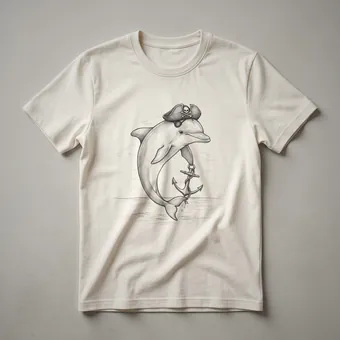 - This graphic tee showcases a playful dolphin sporting a pirate hat and a classic anchor.