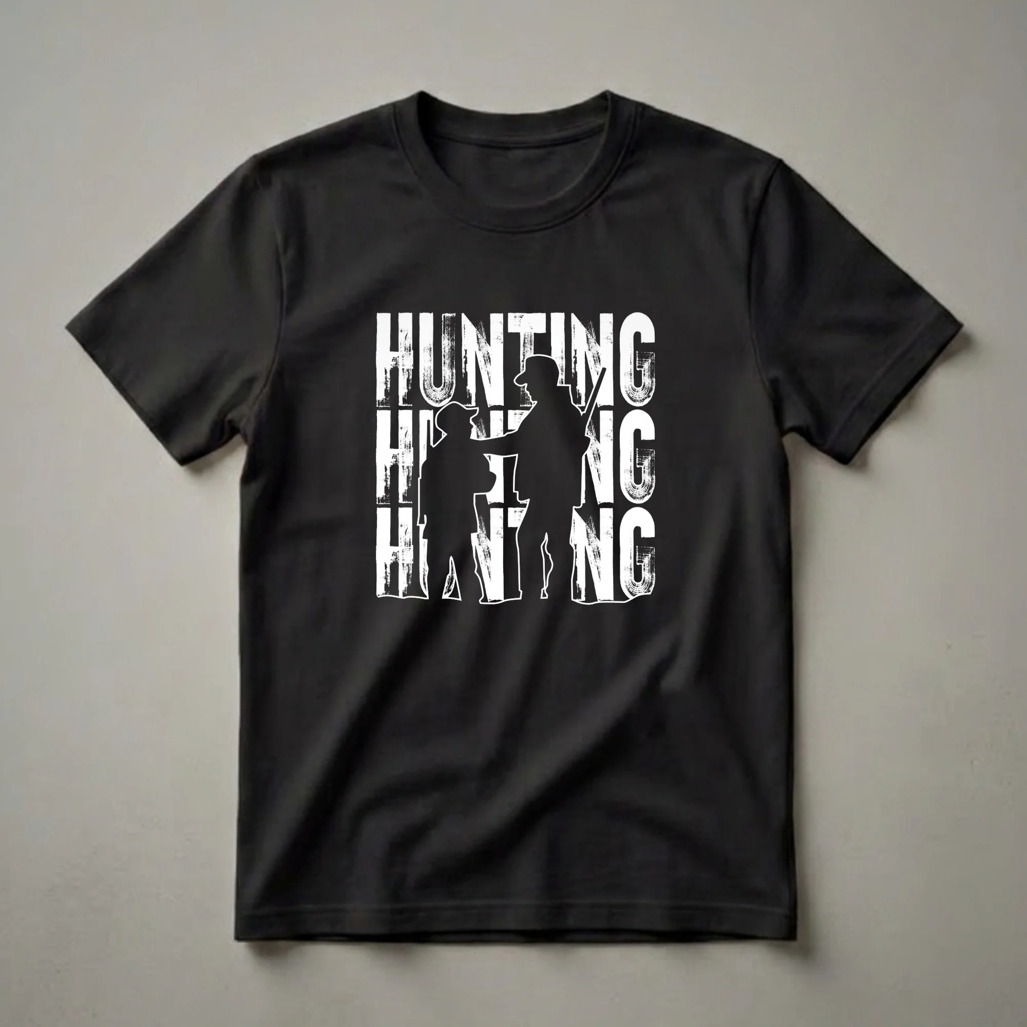 Father and son hunters share a special connection, often forged during early morning excursions into the wilderness. This graphic tee captures that unique partnership, showcasing a silhouette of an adult and child, both equipped with hunting rifles and wearing caps. The word 'HUNTING' is boldly displayed in a distressed, brush-stroke style font, repeated vertically to create a striking visual. This shirt is a staple for any father who enjoys teaching his son the traditions of the hunt, or for a son who looks up to his hunting mentor. It's a thoughtful gift for the outdoorsman who cherishes time spent in nature, whether during deer season or any other hunting adventure. This t-shirt works well for casual wear, outdoor excursions, or as a conversation starter among fellow hunting enthusiasts. The imagery evokes the spirit of shared experiences and the passing down of skills from one generation to the next, making it a meaningful piece of apparel for any hunting family.