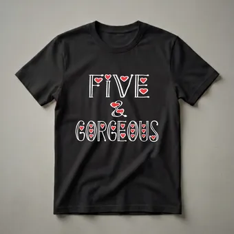 Five-year-old girls are entering a vibrant stage of childhood, full of imagination and energy. This 'Five & Gorgeous' graphic tee captures that spirit with its playful design. The bold white lettering, accented with cheerful red hearts, stands out against the black background, making it an eye-catching piece for any birthday celebration. Turning five is a significant milestone, marking a transition into early elementary years where children often develop a stronger sense of self and personal style. This shirt is worn by the birthday girl herself, celebrating her special day with a message of confidence and charm. It's a thoughtful gift idea for parents, grandparents, aunts, or friends looking to make her fifth birthday memorable. Imagine her excitement wearing this t-shirt to her birthday party, a family gathering, or even just for a fun day out, feeling both comfortable and fabulous. This shirt is a wonderful way to commemorate her fifth year, a time of discovery and joy.