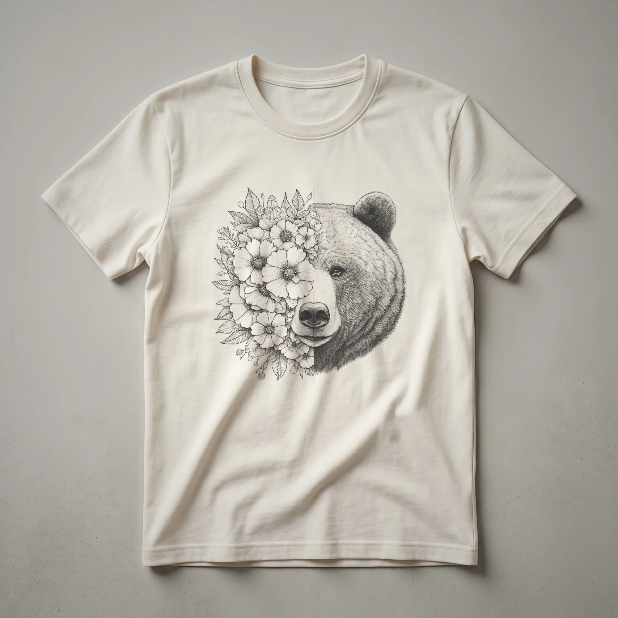 - Graphic t-shirt for women featuring a floral bear silhouette.