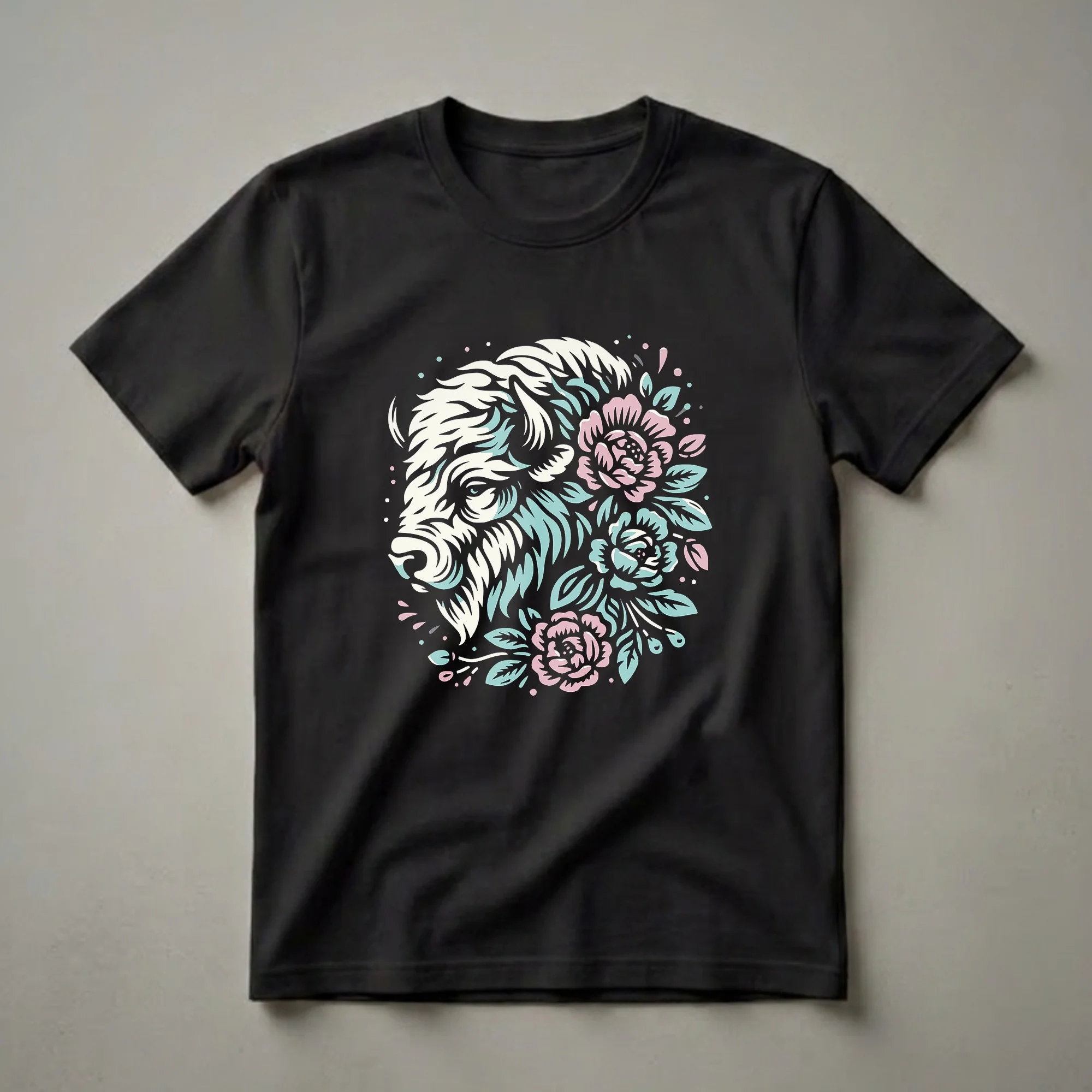 - Celebrate the American bison with this unique floral graphic tee, perfect for wildlife enthusiasts.