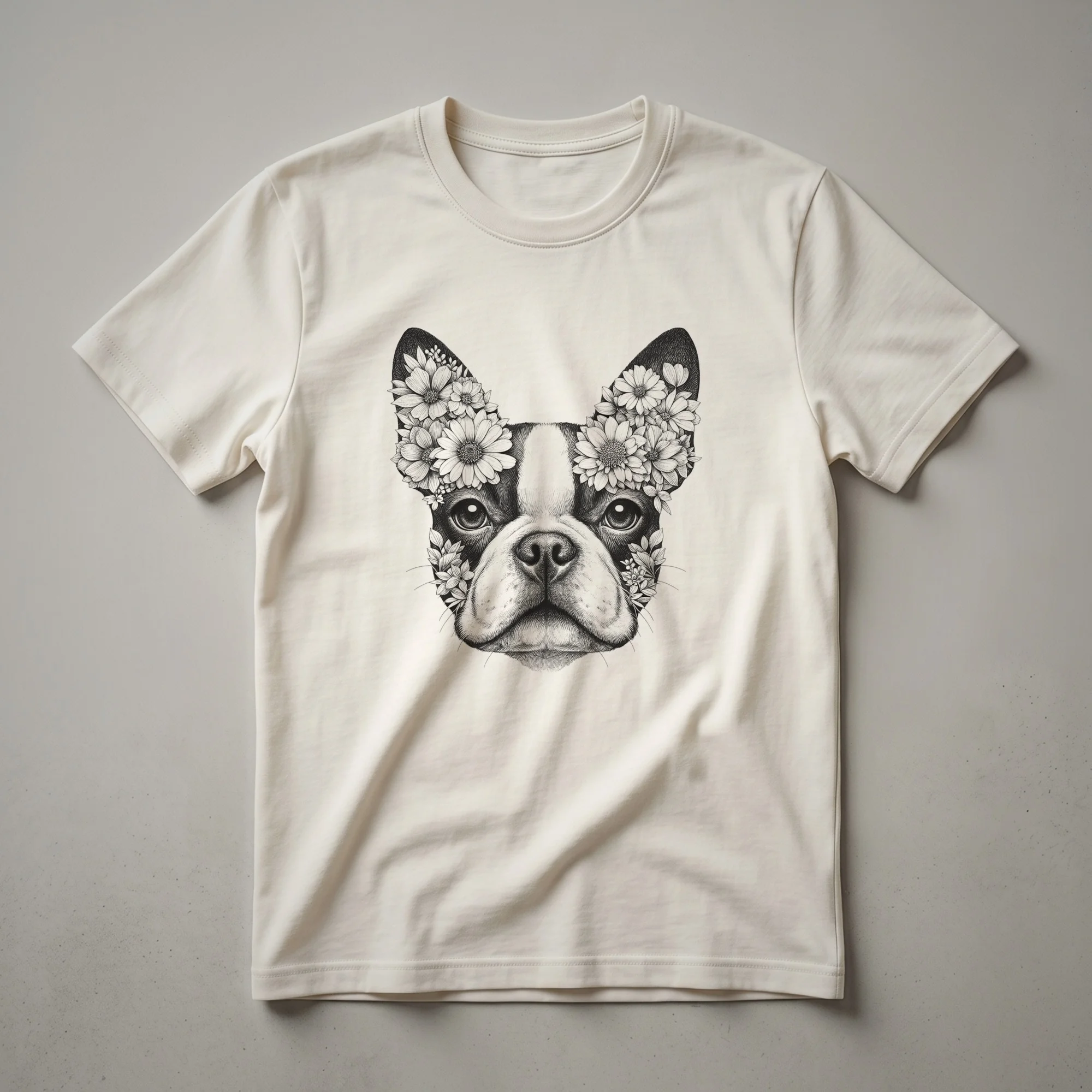 Boston Terrier moms and dads who want to express their affection for their beloved companions will reach for this eye-catching graphic tee. The design features the distinctive face of a Boston Terrier, rendered with a charming floral motif that adds a touch of elegance to the canine portrait. Boston Terriers, known for their compact size and friendly disposition, make wonderful pets for families and individuals alike. This shirt celebrates the unique bond between owners and their Bosties, making it a staple in any dog lover's wardrobe. It's a thoughtful gift for birthdays, holidays, or just because for the Boston Terrier enthusiast in your life. Wear this t-shirt to your next dog park visit, casual outing, or while relaxing at home with your furry best friend. The intricate floral details surrounding the terrier's face create a striking visual that is sure to spark conversations among fellow dog lovers. This tee is a wonderful way to showcase your pride in being a Boston Terrier parent.