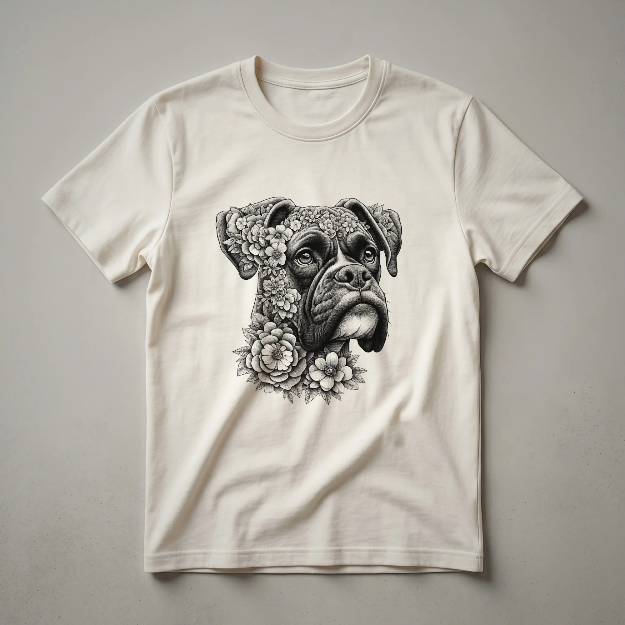 - Floral Boxer dog face graphic tee for proud Boxer moms.