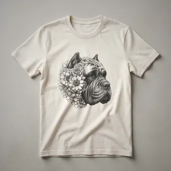 - Features a stylized Cane Corso dog head with colorful flowers.