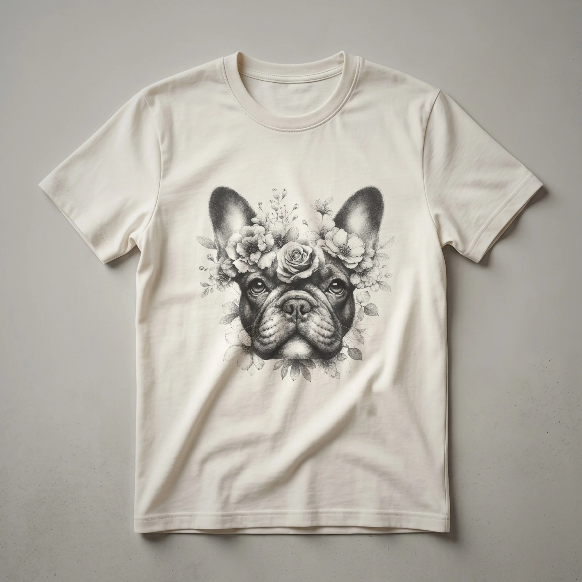 - A striking floral French Bulldog graphic tee for dog moms.