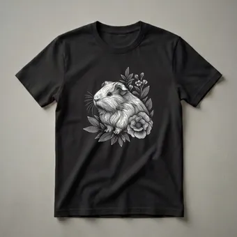 Hover to zoom · tap to expand Floral Guinea Pig Linocut Graphic T-Shirt for Pet Lovers