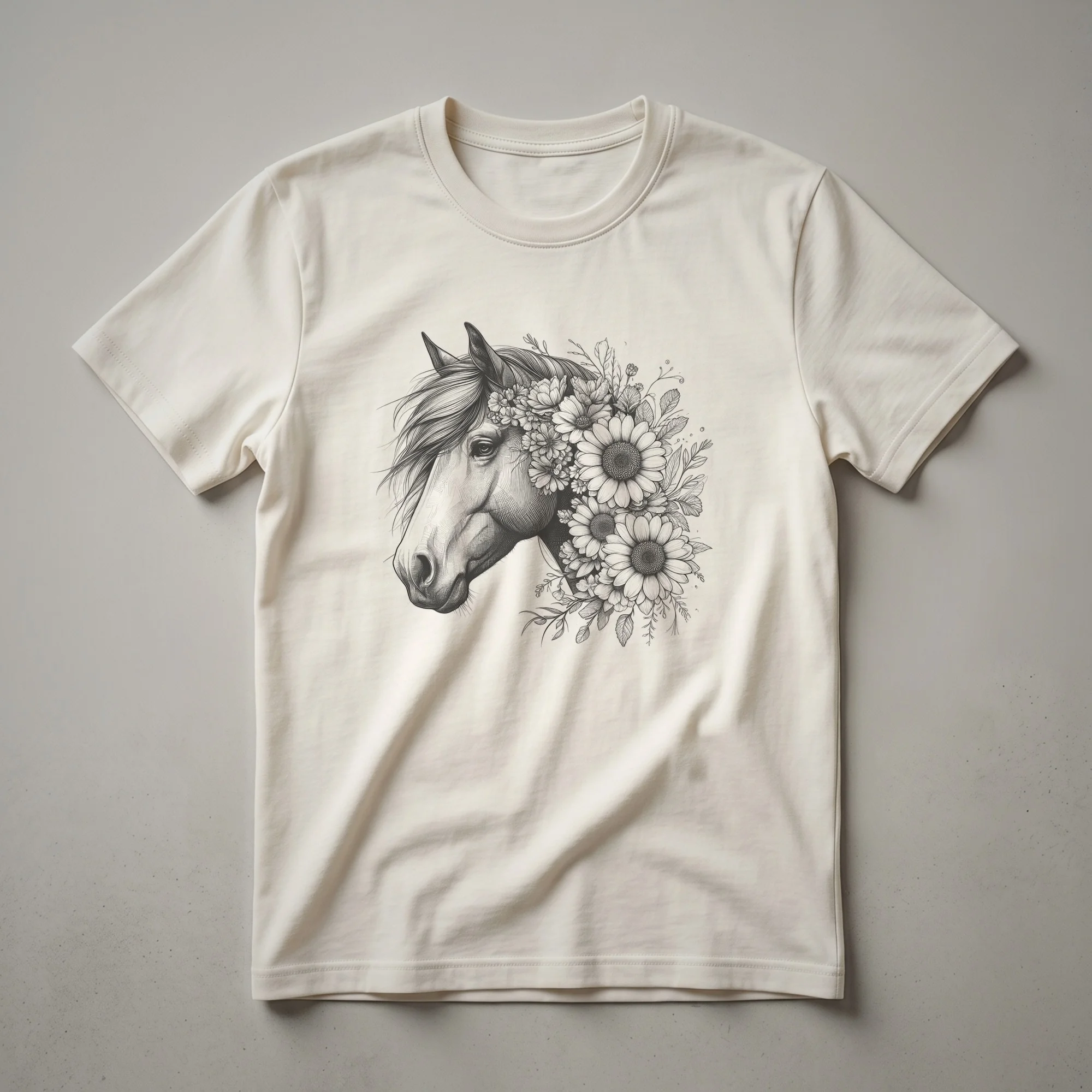 - A unique floral horse design for women who adore horses.