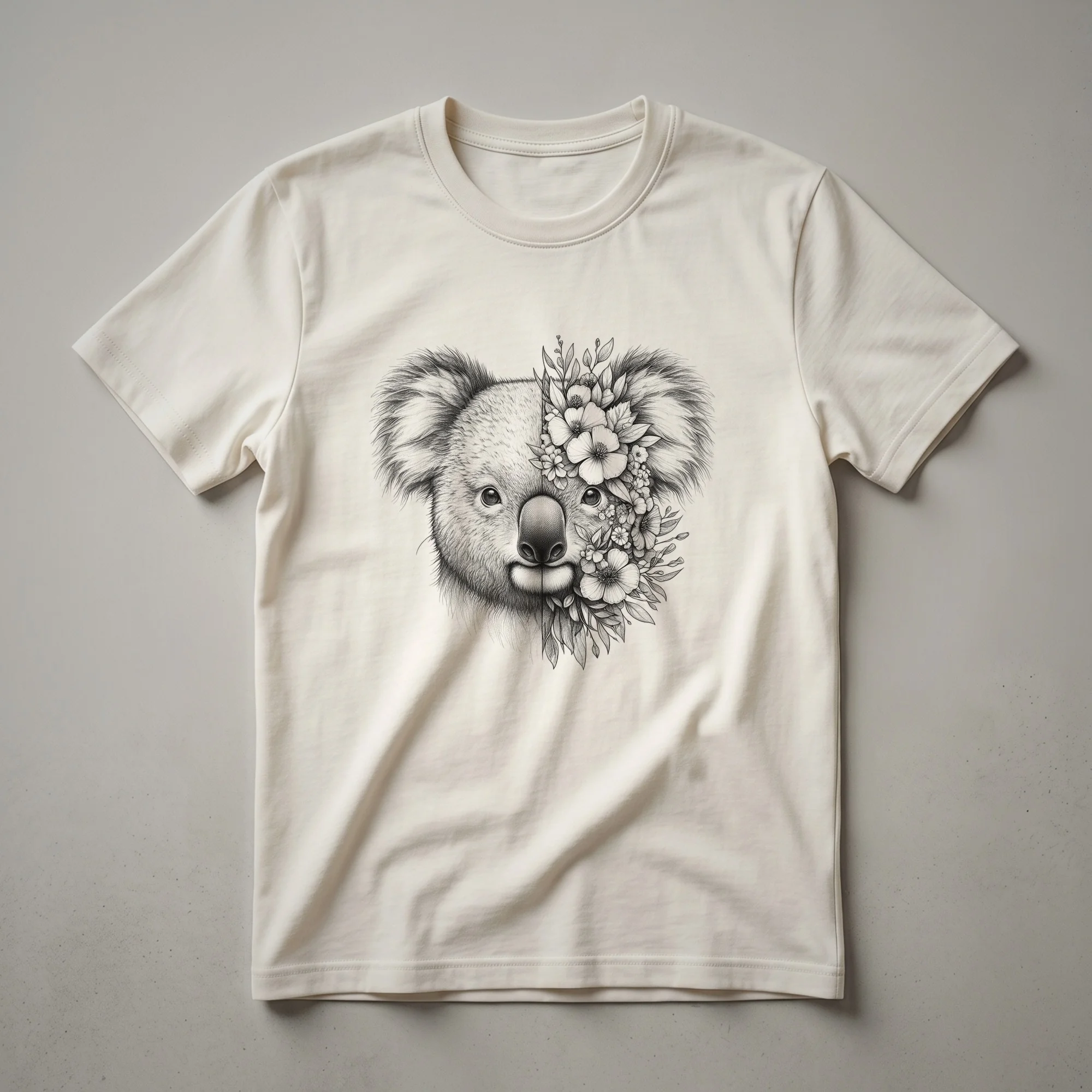 - A charming floral koala graphic tee for women and girls.