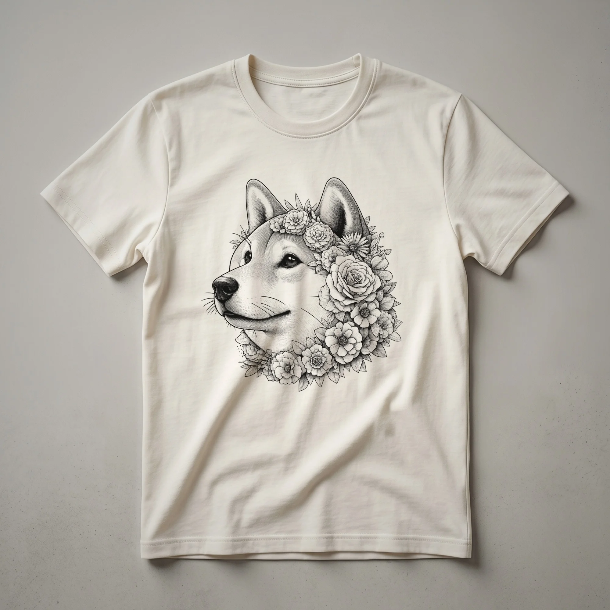 - Features a unique Shiba Inu face artfully composed of flowers.