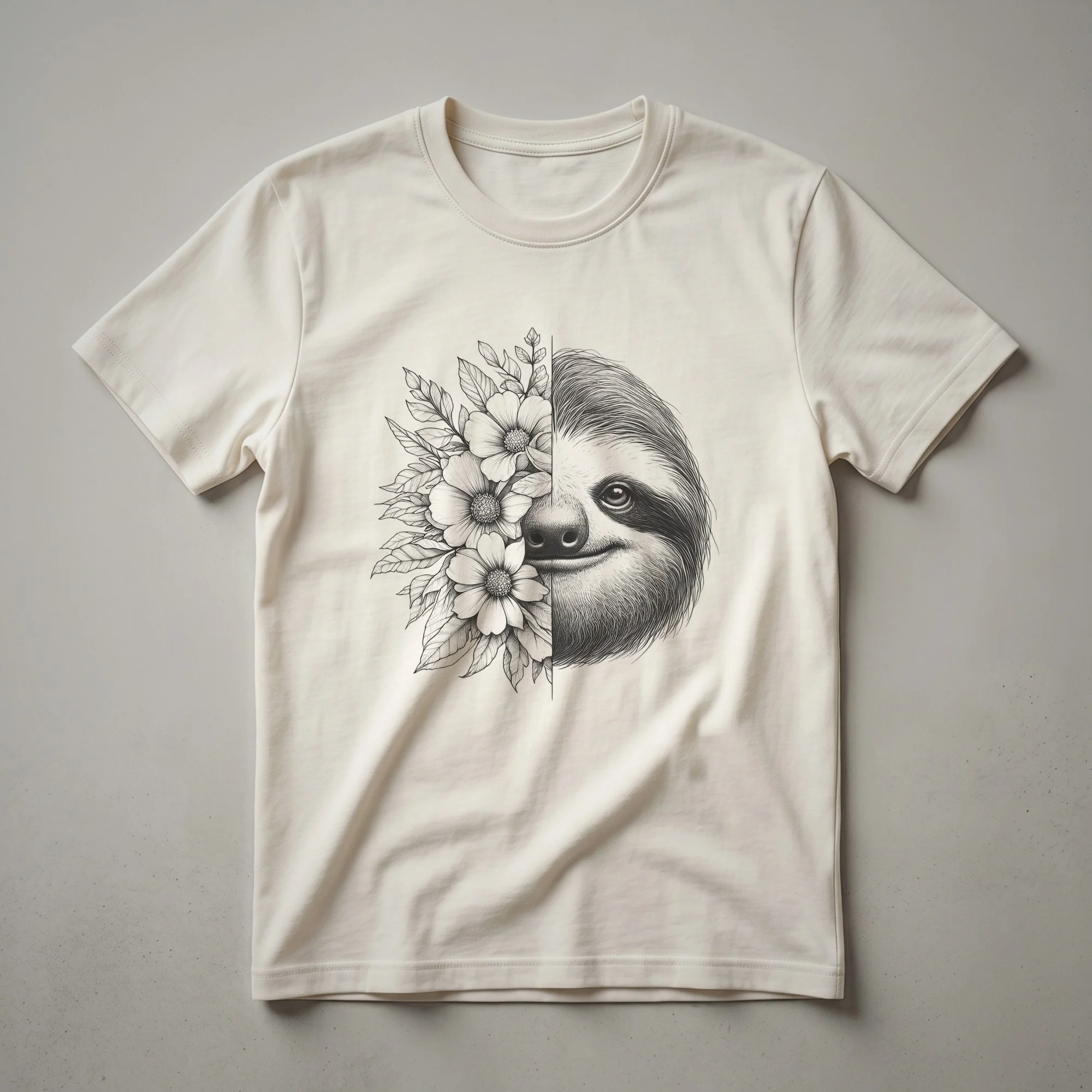 - This sloth face graphic tee is a charming choice for casual outings and celebrating slow-moving marsupials with a floral twist.