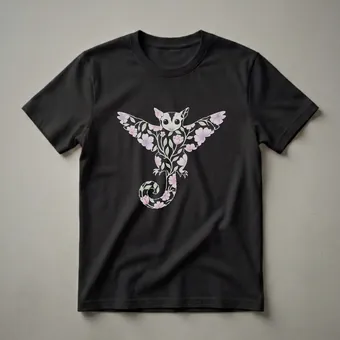 Sugar gliders, known for their gliding membranes and nocturnal habits, are captivating marsupials native to Australia and New Guinea. This striking graphic tee captures the charm of these small creatures with an artistic flair. The design features a sugar glider intricately decorated with delicate floral patterns and swirling green vines, creating a visually appealing and unique piece of apparel. The artwork, rendered in a drawing style with soft pastel colors for the flowers, brings a touch of nature's beauty to your wardrobe. This t-shirt is a wonderful way for wildlife enthusiasts, nature lovers, or anyone who appreciates unique art to express their passion. It makes a thoughtful gift for friends or family who are drawn to the wonders of the animal kingdom. Imagine wearing this eye-catching shirt on a hike, to a casual outing, or while enjoying a quiet evening at home, celebrating the enchanting world of sugar gliders. This shirt is a staple for anyone looking to add a touch of whimsical nature to their collection.