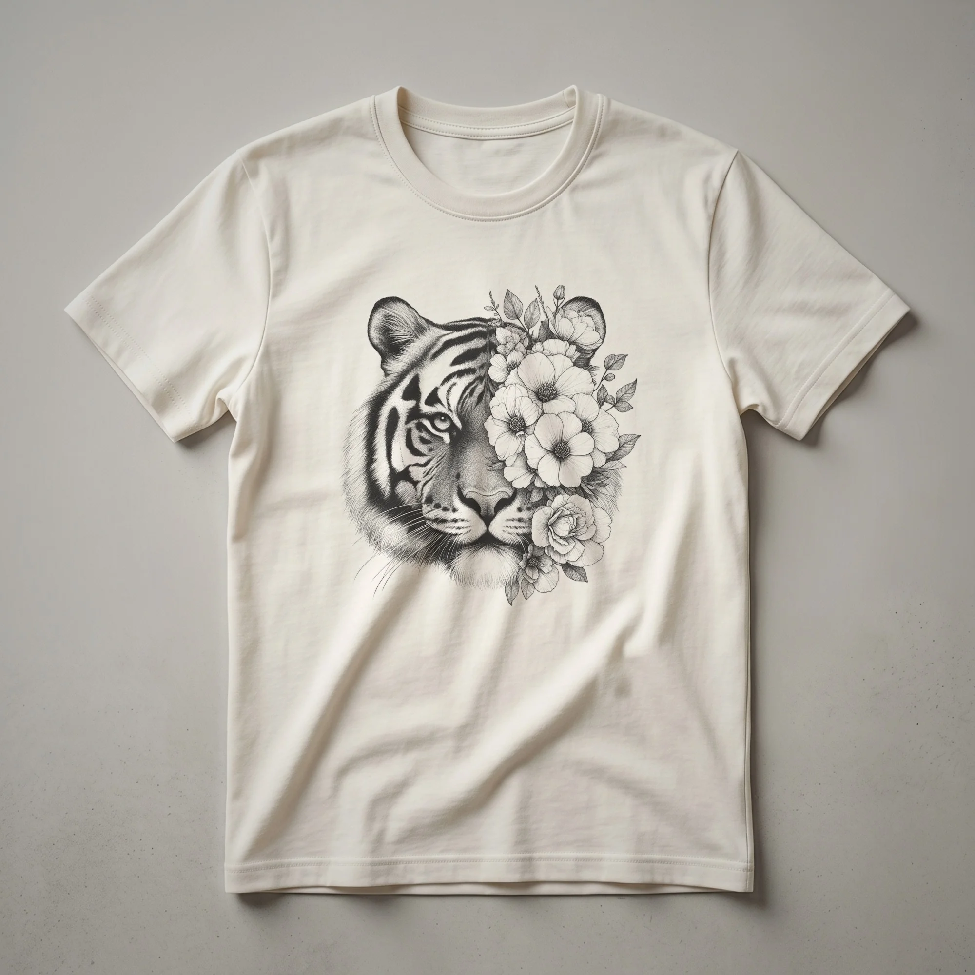 Hover to zoom · tap to expand Floral Tiger Face Graphic T-Shirt for Wildlife Lovers