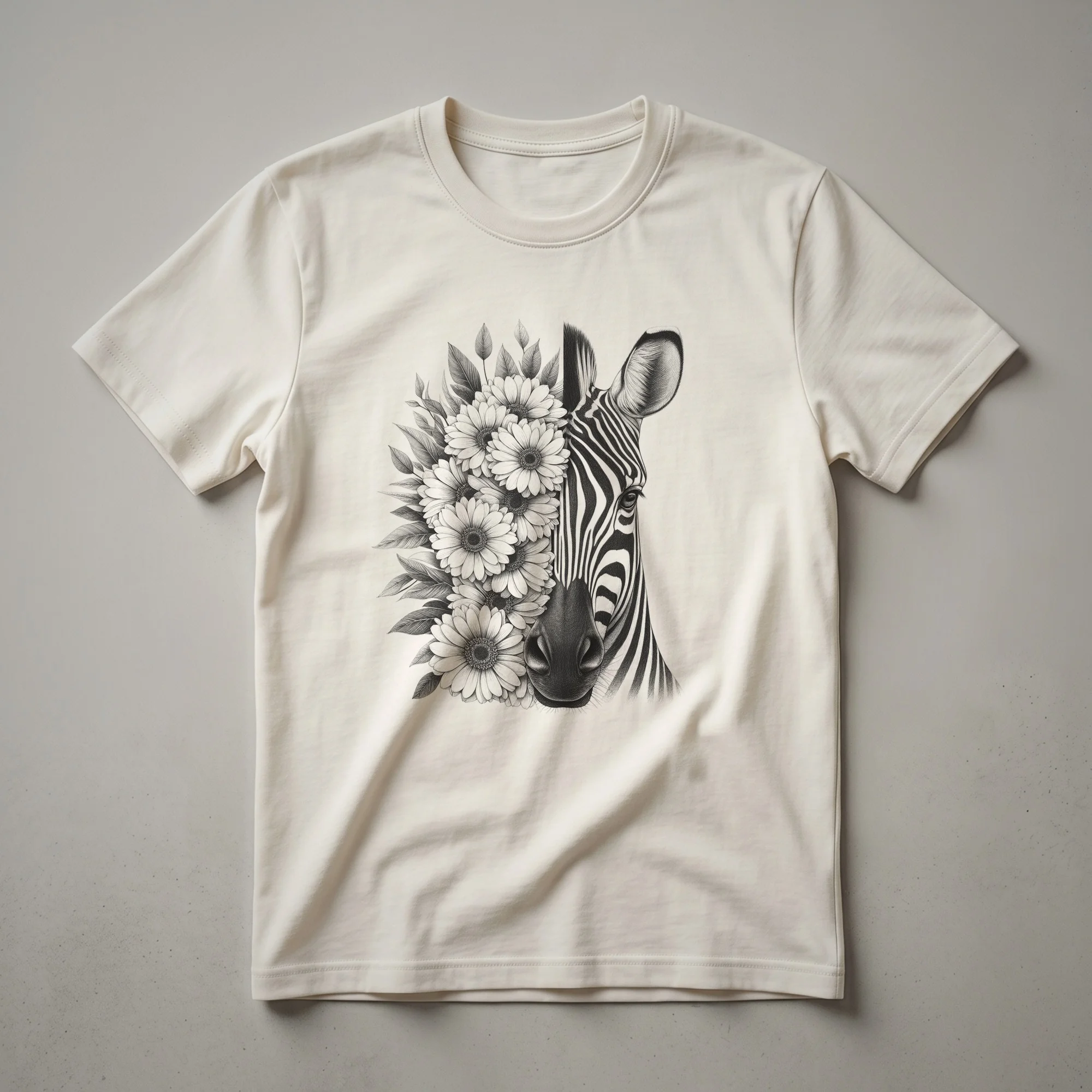 - A unique floral zebra sketch t-shirt for wildlife admirers.