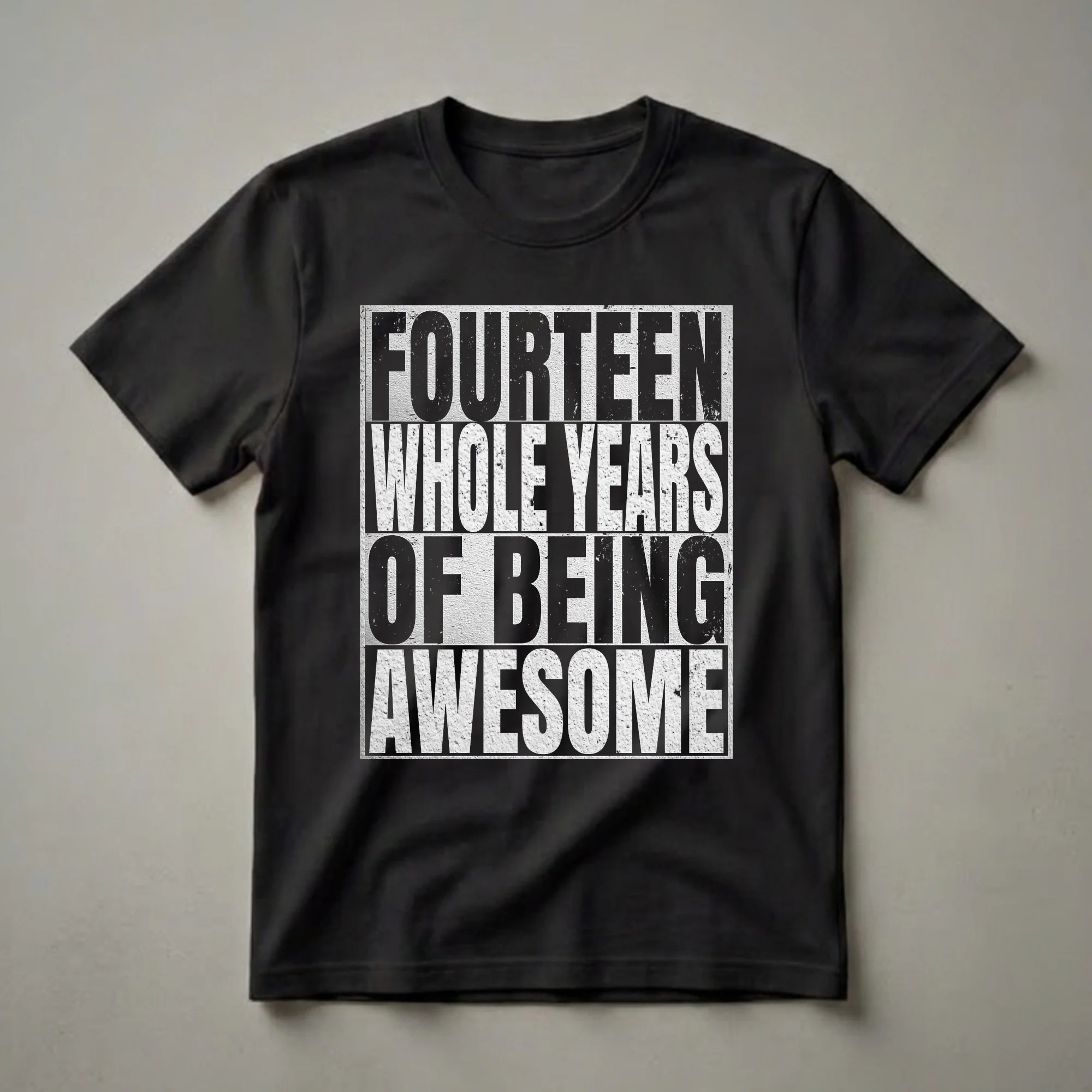 - Features bold, distressed text that reads 'Fourteen Whole Years Of Being 14'.