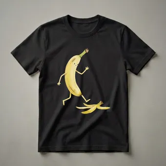 Bananas are a staple in kitchens worldwide, known for their potassium-rich flesh and convenient natural packaging. This eye-catching graphic tee captures a humorous moment, depicting a personified banana in the midst of slipping on its own discarded peel. The watercolor art style gives the design a unique, handcrafted feel, making it stand out from typical novelty shirts. This t-shirt is a thoughtful gift for chefs, baristas, or anyone who appreciates a bit of playful food humor. It's a conversation starter, a thoughtful choice for casual outings, game nights, or simply lounging at home. The playful imagery evokes classic slapstick comedy, bringing a smile to anyone who sees it. This shirt is a fun way to express a love for quirky food-related art and a lighthearted approach to life. Wear this tee to your next brunch or gathering and share a laugh with friends who enjoy a good pun or a silly design.