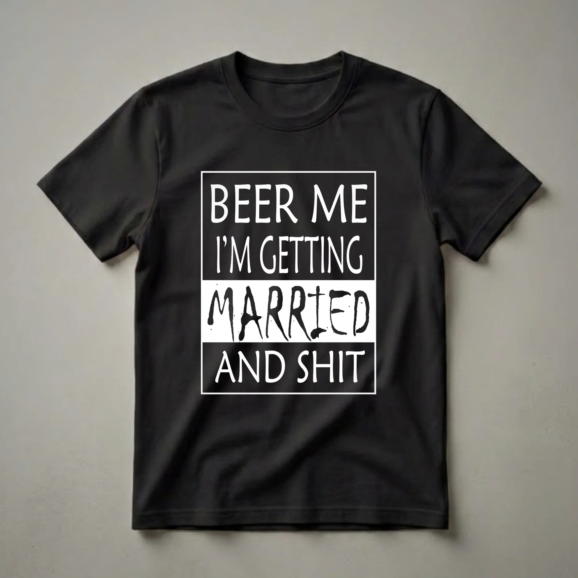 - Features the bold text "BEER ME I'M GETTING MARRIED AND SHIT".